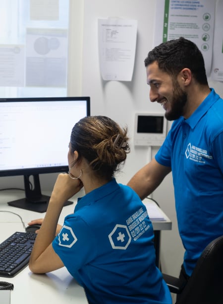 Our team is ready to take your call. In order to direct you to a medical post or perform a home visit, you will be asked to describe your symptoms and physical abilities.